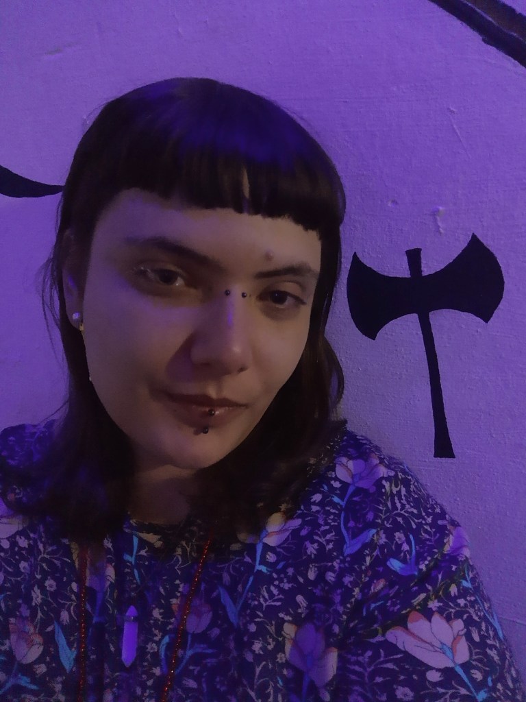 By the soaking wet soil I shall lie, nude and covered in sacred blood and saliva, the other shall cover my skin with his, as we worship Mother Nature and my Dark Goddess, I will receive his fallus into my bleeding cave, slippery penetration, otherworldly sensation. The savage instinct arrives as we practice magic through intercourse, our teeth are unstoppable and seek to draw blood from each other’s necks, his lips cover me with bruises from all the forceful suction as he holds my wrists behind my head, full control over my vessel. Nails, as sharp as possible, cutting through the skin, I ask for my hands to be freed, he obliges, and without removing his member from my vagina, he pushes his finger inside it just so he could take it off and show me the sticky mixture of fluids from blood, feminine nectar, and pre-ejaculate juice, he presses his index agaisnt my lips, and tells me to open my mouth as he gazes into my eyes, I obey and instinctively suck on his finger trying to cover the insides of my mouth with our magical liquids.